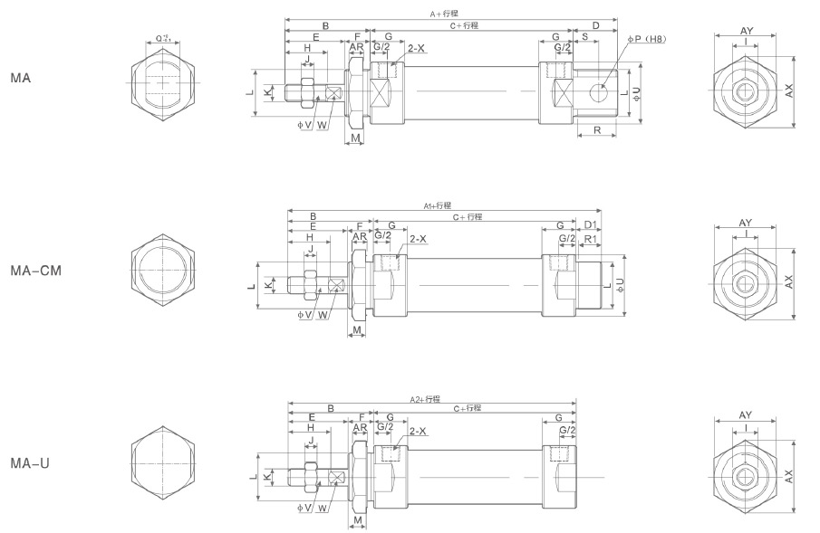 - MU系列橢圓形活塞氣缸(桿不回轉(zhuǎn))