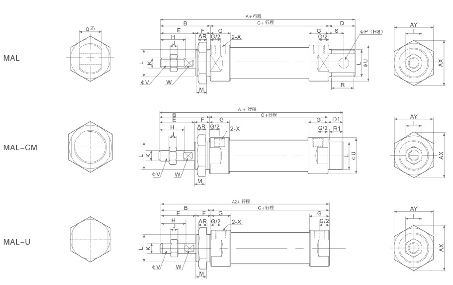 - MAL系列迷你氣缸