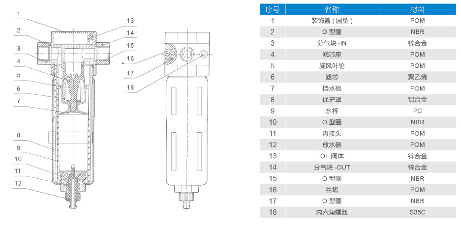 物資信息 | 殼體:壓鑄鋅;過濾杯; PC: 金屬保護罩:鋁合金;密封:丁睛橡膠 |