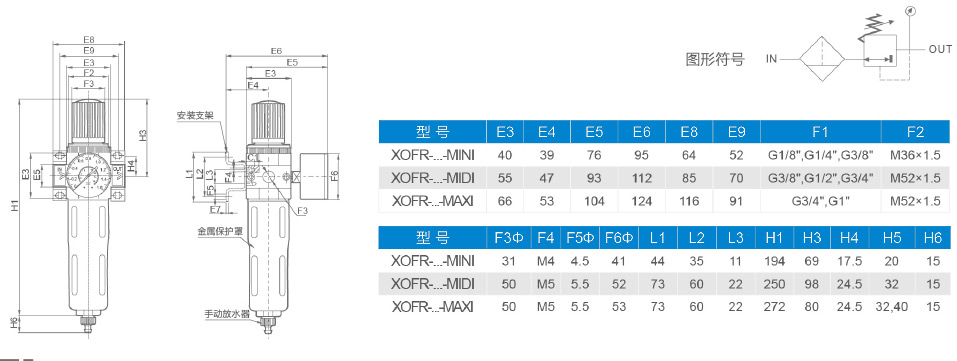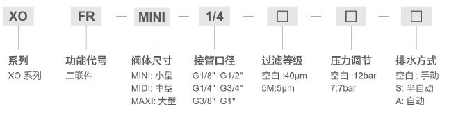使用壓力:12bar,5μm | XOFR-1/8-5M-MINI | XOFR-1/4-5M-MINI | XOFR-3/8-5M-MINI | XOFR-3/8-5M-MIDI | XOFR-1/2-5M-MIDI | XOFR-3/4-5M-MIDI | XOFR-3/4-5M-MAXI | XOFR-1-5M-MAXI | |