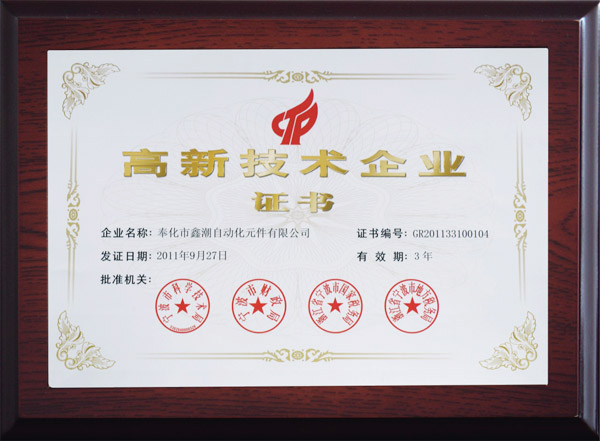 鑫潮氣動公司 被寧波多家政府機關 授予“國家高新技術企業(yè)”稱號。