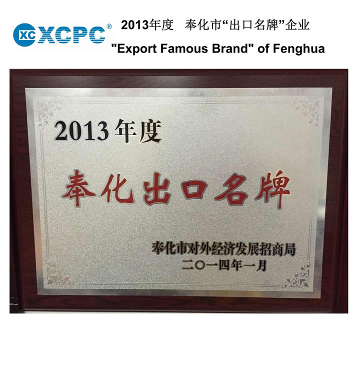鑫潮氣動(dòng)(XCPC Pneumatic)在2014年1月被評為2013年度“奉化出口名牌”
