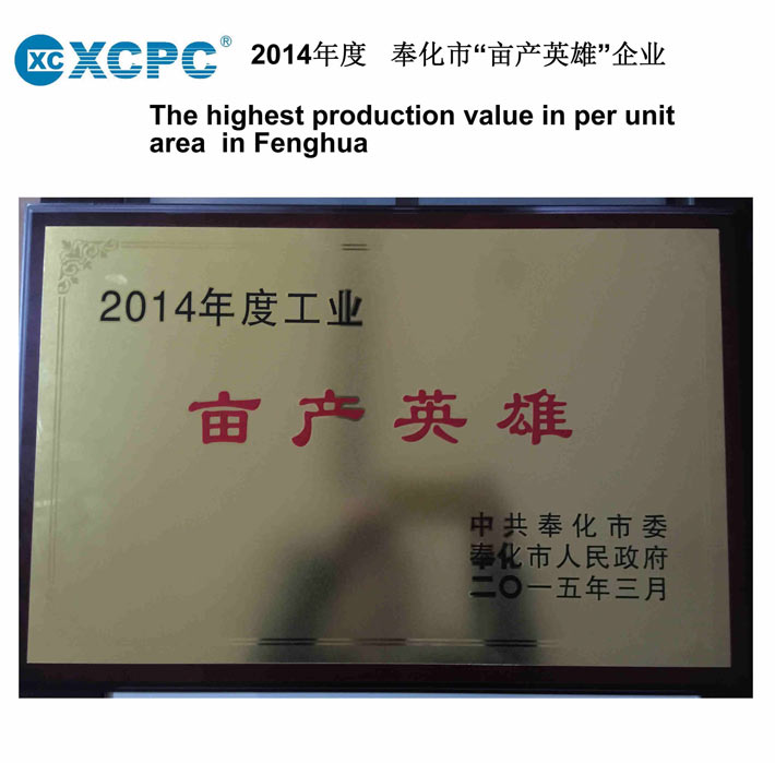 2015年3月,鑫潮氣動(XCPC Pneumatic) 被奉化市政府授予2014年度”畝產英雄“企業(yè)