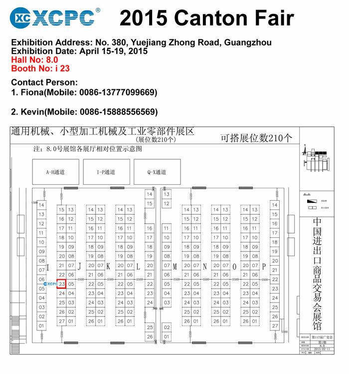 2015年4月15日-19日,鑫潮氣動(dòng)(XCPC Pneumatic)將在參加第117屆廣交會(huì),歡迎新老客戶(hù)到時(shí)訪(fǎng)問(wèn)我們的展位。攤位詳細(xì)圖請(qǐng)參考附上的圖片