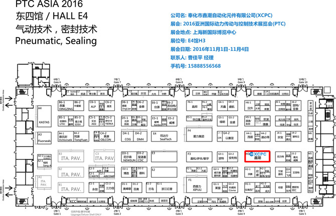2016年11月1日-4日,鑫潮氣動(dòng)(XCPC Pneumatic)將參加亞洲上海PTC展,展館號(hào):E4,展位號(hào):H3,歡迎新老客戶(hù)到時(shí)訪問(wèn)我們的展位。